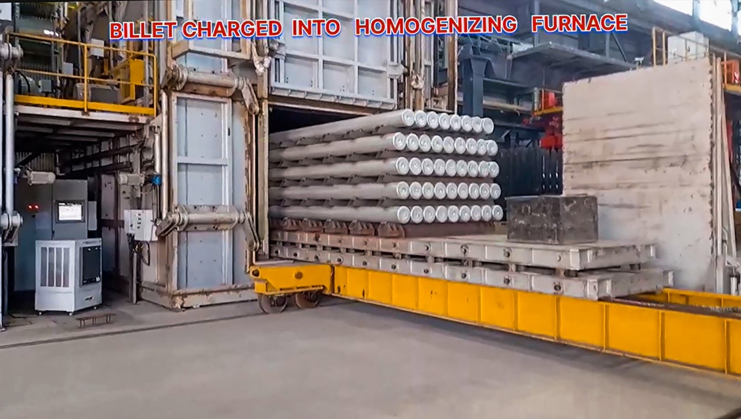 - Homogenizing Facility – Equipped with electrically heated homogenizers, a high-capacity cooler, and an automated billet charging system, guaranteeing uniform metallurgical properties, superior billet quality, and enhanced process reliability.